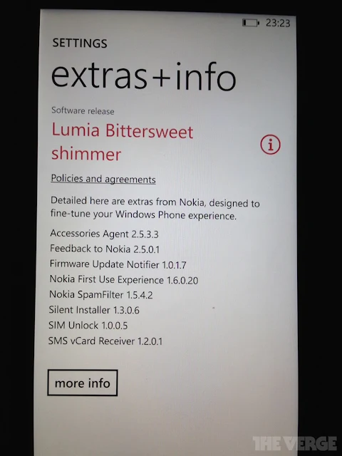 Phía sau của thiết bị bao gồm một máy ảnh nhô lên một chút tương tự như Nokia Lumia 925, nó cũng khớp với ảnh thông cáo báo chí bị rò rỉ đầu tuần này. Chạy trên phiên bản mới nhất của Windows Phone 8, GDR3, chúng ta có thể thấy thiết bị có một cột bổ sung trên màn hình Start để hỗ trợ độ phân giải 1080p.